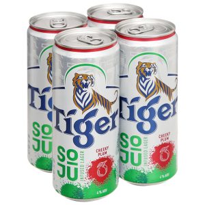 4 lon bia Tiger Soju Cheeky Plum vị mận 330ml