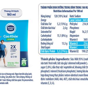 Sữa tiệt trùng có đường Dutch Lady Cao Khoẻ bịch 180ml