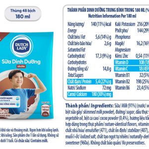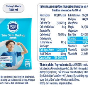 Sữa dinh dưỡng ít đường Dutch Lady bịch 180ml