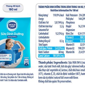 Sữa dinh dưỡng không đường Dutch Lady bịch 180ml