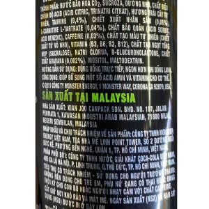 Nước tăng lực Monster Energy với thành phần chính bao gồm các loại vitamin và thảo dược sẽ cung cấp cho bạn vitamin B3, vitamin B6, vitamin B12, natri giúp cơ thể bạn khỏe mạnh. Sản phẩm với hương vị tươi mát sẽ lập tức đập tan cơn khá, đem đến cho người dùng sự tỉnh táo và sảng khoái.