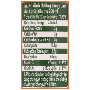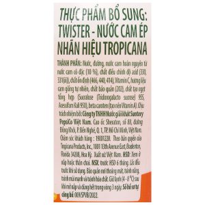 Với thành phần chính từ tép cam tươi mang lại vị ngọt thanh mát cùng hương thơm tự nhiên trong từng tép cam tươi, mang lại cảm giác sảng khoái, tươi mới khi thưởng thức. Nước cam ép Twister Tropicana 450ml giàu vitamin và nhiều chất dinh dưỡng tốt cho sức khỏe và sắc đẹp