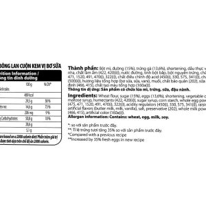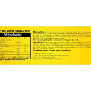 Lớp bánh bông lan thơm, béo mềm mịn hấp dẫn được cuộn một lớp kem vị bơ béo ngậy hào quyện với nhau kích thích vô cùng. Bánh bông lan cuộn kem vị bơ sữa Solite hộp 360g (20 cái) tiện lợi cho gia đình sử dụng. Bánh bông lan Solite vừa ăn vừa thưởng trà thư giãn tạo cảm giác thư thái và lạc quan