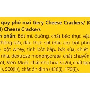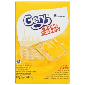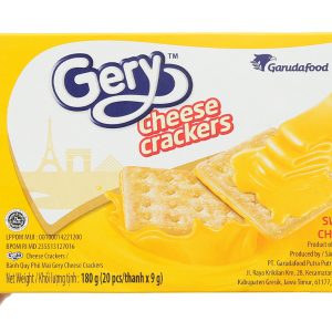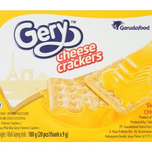 Bánh quy thơm ngon, giòn tan hương phô mai được phủ một lớp đường trên bề mặt nhìn rất hấp dẫn. Bánh cracker phô mai Gery hộp 180g có độ ngọt vừa phải, hấp dẫn và không bị ngán. Bánh quy Gery được nhập khẩu từ Indonesia chất lượng cao