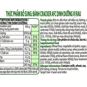 Bánh quy AFC là thương hiệu lớn, cho chúng ta yên tâm sử dụng và tin dùng. Bánh quy dinh dưỡng, thơm ngon. Bánh cracker vị rau AFC Dinh dưỡng hộp 86g cung cấp năng lượng cho bạn hoạt động ngày dài.