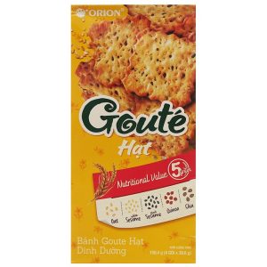 Bánh quy dành cho chế độ ăn uống healthy của bánh quy Gouté chất lượng, được nhiều người tin dùng. Từ bánh quy mè truyền thống, Bánh hạt Gouté hộp 158.4g đã bổ sung thêm 5 loại hạt: Yến mạch, mè trắng, mè đen, diêm mạch đỏ, hạt chia nhằm mang lại giá trị dinh dưỡng cao và tốt cho sức khỏe.