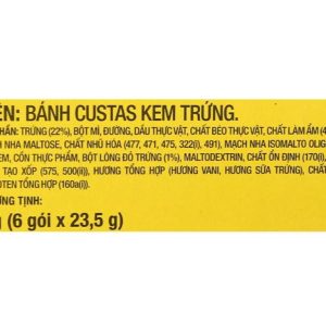 Bánh bông lan thơm mềm, xôm xốp, dai ngon hấp dẫn. Bánh kem trứng Custas hộp 141g (6 cái) với lớp kem trứng béo ngậy bên trong lớp bánh bông lan, tạo nên hương vị độc đáo. Bánh bông lan Custas hấp dẫn, thơm ngon, phù hợp để ăn vặt hay dùng để làm quà.