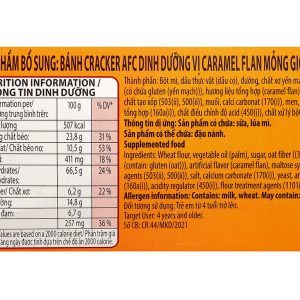 Bánh AFC giòn, thơm ngon ăn béo rất hấp dẫn và ngon miệng. Bánh quy caramel flan AFC hộp 109g ăn mỗi sáng hoặc ăn thay bữa nhẹ buổi chiều sẽ bổ sung dinh dưỡng cho cả ngày dài năng động; thích hợp làm món bánh quy ăn nhẹ bổ dưỡng cho những người bận rộn.
