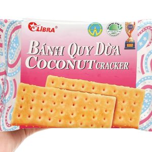 Bánh quy dừa thơm ngon, có vị ngọt vừa phải cùng lớp đường phủ trên bề mặt rất hấp dẫn. Bánh quy dừa vuông Libra gói 180g giòn ngon, kích thích vị giác khi ăn vô cùng. Bánh quy Libra là sản phẩm Việt Nam chất lượng cao