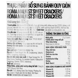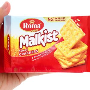 Bánh quy sữa thơm, giòn ăn béo vị sữa, có một lớp đường mỏng trên bền mặt bánh. Bánh Malkist Crackers Roma gói 105g được đóng gói thành gói nhỏ tiện lợi, dễ mang theo ra ngoài, thích hợp ăn vặt hoặc thưởng trà nhâm nhi. Bánh quy Roma được sản xuất tại Indonesia chất lượng, thơm ngon.