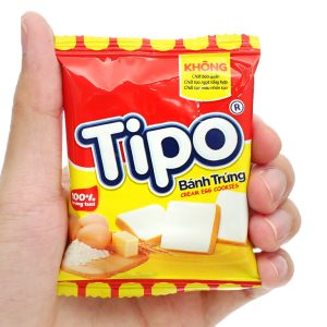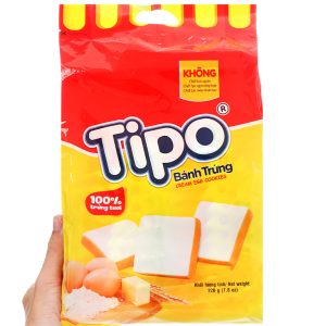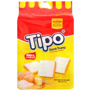 Bánh trứng Tipo có phần bông lan nướng giòn tan, được phủ lên lớp kem mềm mịn, béo ngậy. Bánh trứng Tipo gói 220g là loại bánh quy thơm ngon, dinh dưỡng, chỉ cắn một miếng là bạn có thể cảm nhận vị bơ trứng tan trong miệng, lưu lại dư vị ngọt ngào mà không gắt, thơm ngon nhưng không ngán.