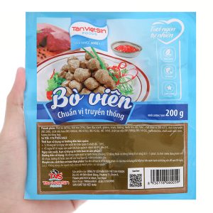 Bò viên Tân Việt Sin luôn mang đến những loại bò viên tươi ngon và giàu chất dinh dưỡng. Bò viên Tân Việt Sin gói 200g làm từ nguyên liệu chả thịt bò tươi ngon kết hợp với các loai gia vị, có thể đa dạng sử dụng chế biến: nướng, chiên hoặc nấu lẩu mang đến hương vị mới cho bữa ăn gia đình