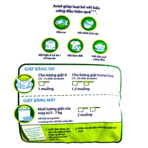 Là dòng bột giặt giúp loại bỏ các vết bẩn cứng đầu chỉ trong 1 bước ngay cả những vết bẩn khó giặt như dầu xe, vết dính trái cây, vết bẩn ở cổ áo, cổ tay áo… Bột giặt Ariel bổ sung thêm hương nắng mai cho quần áo luôn thơm mát. Bột giặt Ariel hương nắng mai 4kg bột giặt tin dùng của mọi nhà