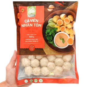 Thương hiệu cá viên SG Food với công thức chế biến độc đáo, sản phẩm đảm bảo giữ nguyên hương vị thơm ngon của từng viên cá viên. Cá viên nhân tôm SG Food gói 500g được chế biến từ nguyên liệu cá tươi ngon kết hợp với nhân tôm bùng vị, dễ dàng chế biến các món ăn chiên, sốt, nấu lẩu,…