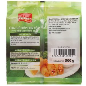 Là sản phẩm đến từ thương hiệu chả giò Cholimex quen thuộc với người dùng Việt Nam. Chả giò xốp con tôm PTO Cholimex gói 500g được chế biến từ thành phẩn tôm tươi cùng các loại gia vị khác. Chả giò chiên vàng giòn rụm hoà với hương thơm đặc trưng của nhân tôm.