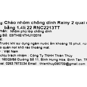 Đánh giá “Chảo nhôm chống dính 2 quai đáy bằng Rainy 1.4Li 22 RNC2213TT 22cm”