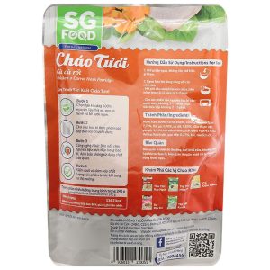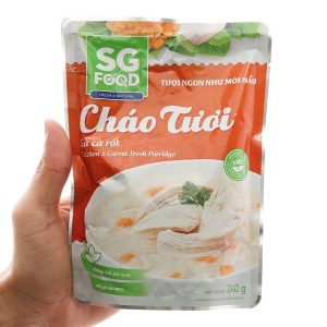 Sản phẩm cháo ăn liền tiện lợi từ thương hiệu cháo SG Food. Cháo tươi gà cà rốt SG Food gói 240g được làm từ các nguyên liệu tự nhiên, an toàn cho sức khỏe, hương vị cháo là sự kết hợp hài hòa của thịt gà và cà rốt bổ dưỡng, thơm ngon cùng mùi hương hấp dẫn