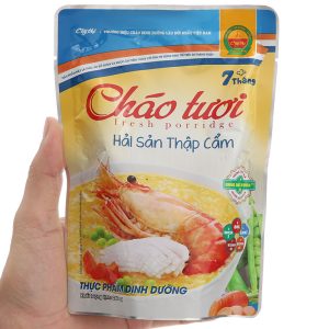 Cháo tươi ăn liền tiện lợi được làm từ các nguyên liệu đảm bảo tươi sạch, không dùng chất bảo quản. Cháo tươi hải sản thập cẩm Cây Thị gói 240g chính hãng cháo Cây Thị, hương vị quê nhà thơm ngon, dinh dưỡng công nghệ bao bì hiện đại bảo quản sản phẩm an toàn