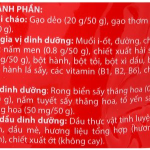 Sản phẩm cháo ăn liền tiện lợi lợi thơm ngon, chính hãng đến từ thương hiệu cháo Yến Việt, với thành phần an toàn, dinh dưỡng, kết hợp hương vị hấp dẫn, hợp khẩu vị. Cháo yến hải sản rong biển Yến Việt 50g ngon như cháo nấu, bổ sung protein, chất xơ, nhiều vitamin và các dưỡng chất khác