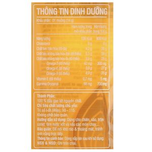 Sản phẩm sản xuất trên dây chuyền công nghệ hiện đại, chứa nhiều dưỡng chất quý giá, không chứa Cholesterol và chứa hàm lượng Omega3, Omega6, Omega9 cao giúp mang lại một trái tim khỏe. Dầu gạo chịu được nhiệt độ cao (240 độ C), giúp giảm nguy cơ cháy khét và mang đến hương vị thơm ngon cho món ăn.