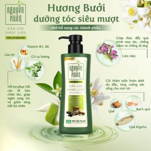 Dầu gội dược liệu Nguyên Xuân hương bưởi 450ml là dầu gội giúp bạn có mái tóc sạch, mềm mại, suôn mượt, tóc trông dày & đen hơn, dưỡng tóc và da đầu khỏe, mềm mại. Dầu gội Nguyên Xuân được nghiên cứu dựa trên kinh nghiệm dân gian, kết hợp khoa học hiện đại mang đến cho bạn mái tóc chắc khỏe