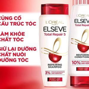 Dầu gội L’Oréal Paris Elseve Total Repair 5 Repairing giảm 5 dấu hiệu của tóc hư tổn 620ml là sản phẩm dầu gội thuộc dòng dưỡng phục hồi hư tổn cho tóc Total Repair 5 của L’Oréal Paris. Dầu gội L’Oréal giúp tóc chắc khỏe mà còn tăng cường độ ẩm giúp bạn thêm tự tin với suối tóc mượt mà.