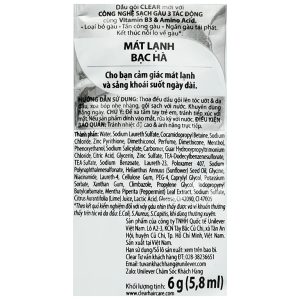 Dầu gội sạch gàu Clear mát lạnh bạc hà 5.8ml x 10 gói