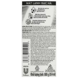 Dầu gội Clear thương hiệu nổi tiếng là loại dầu gội làm sạch gàu số 1 Việt Nam. Dầu gội sạch gàu Clear mát lạnh bạc hà 854ml với công nghệ sạch gàu 3 tác động loại bỏ gàu, tấn công gàu, ngăn gàu tái phát và Vitamin B3 nuôi dưỡng da dầu khoẻ hơn, cảm giác mát lạnh sảng khoái tinh thần khi sử dụng.