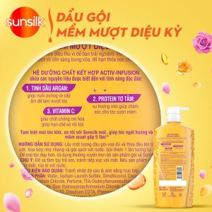 Dầu gội Sunsilk là thương hiệu dầu gội chăm sóc tóc nổi trên thị trường nhiều nước. Dầu gội Sunsilk mềm mượt diệu kỳ 874ml với công thức độc quyền công nghệ khoá ẩm và 5 tinh dầu tự nhiên giúp lưu giữ độ ẩm cần thiết cho mái tóc luôn mềm mượt