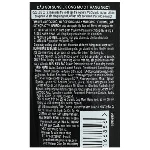 Dầu gội Sunsilk là thương hiệu dầu gội chăm sóc tóc nổi trên thị trường nhiều nước. Dầu gội Sunsilk óng mượt rạng ngời 165ml hệ hoạt chất ngăn ngừa tia UV và chiết xuất bồ kết bảo vệ tóc trước tia UV gây khô cháy, cho mái tóc siêu óng mượt suốt ngày dài.