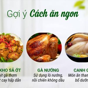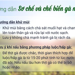 Gà được nuôi hơn 55 ngày nên chất lượng thịt gà chắc, không bị nhão, chân gà dài, vàng, đẹp. Gà đã làm sẵn, mổ bụng, móc lòng.