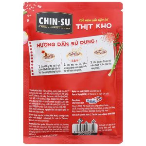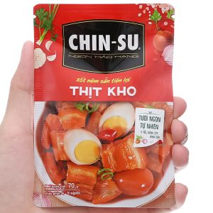 Sản phẩm gia vị nêm sẵn kho thịt của thương hiệu gia vị nêm sẵn Chinsu giúp món ngon thấm gia vị, lên màu đẹp, bắt mắt. Gia vị hoàn chỉnh xốt thịt kho Chinsu gói 70g với sự kết hợp đầy đủ của nước màu, đường, muối và nước mắm, được phối trộn theo tỷ lệ chuẩn, giúp cho món thịt kho ngon chuẩn vị.