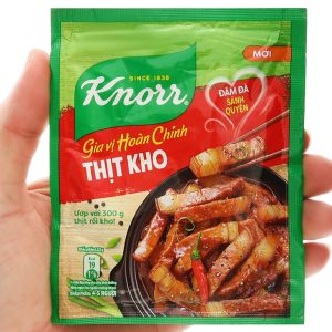 Gia vị hoàn chỉnh Knorr là loại gia vị nêm sẵn rất tiện dụng và phổ biến hiện nay. Gia vị hoàn chỉnh kho thịt Knorr 28g chứa đầy đủ các gia vị được phối trộn với một tỷ lệ hoàn hảo, cùng với vị ngon sánh quyện giúp món thịt kho ngon đúng điệu, vừa nhanh chóng lại vừa hấp dẫn.