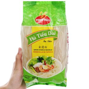 Hủ tiếu dẹp, có màu trắng, sợi dai ngon được làm từ bột gạo và tinh bột sắn, đảm bảo an toàn, chất lượng, chính hãng hủ tiếu Minh Hảo. Hủ tiếu dai Minh Hảo 400g chỉ cần luộc qua nước sôi tầm 10-12 phút là có thể sử dụng chế biến thành nhiều món ăn hấp dẫn.