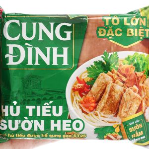 Hủ tiếu ăn liền  tiện lợi, hấp dẫn và thơm ngon cho bữa ăn nhanh chóng. Hủ tiếu sườn heo Cung Đình gói 84g chính hãng hủ tiếu Cung Đình chất lượng với sợi hủ tiếu được bổ sung gạo ST25 thơm ngon, nước súp sườn heo đậm đà hòa quyện cho bạn bữa ăn ngon, dinh dưỡng