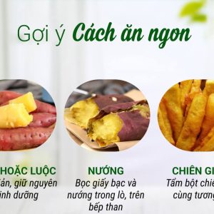 Khoai lang có thể chế biến thành một số món ăn ngon như: khoai lang luộc, khoai lang nướng, khoai lang kén, khoai lang chiên giòn, thạch rau câu khoai lang, chè khoai lang,…