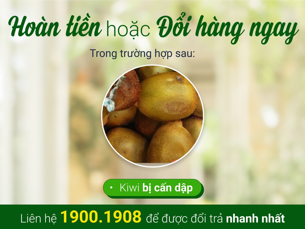 - cam kết hoàn tiền hoặc giao lại ngay sản phẩm trong tất cả trường hợp khách nhận sản phẩm không đạt chất lượng gồm trái bị cấn dập