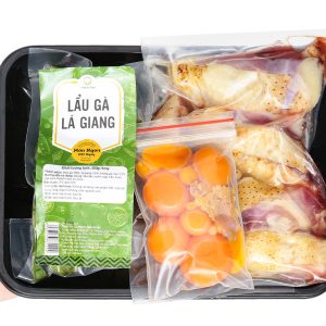 Lẩu gà lá giang tươi, chất lượng, bao gồm thịt gà, lá giang, trứng gà non,… có thể dùng để chế biến thành lẩu, canh, súp, kho hoặc các món ăn thơm ngon khác. Lẩu gà sơ chế sẵn tiện lợi, được nhiều chị em nội trợ tin tưởng lựa chọn.