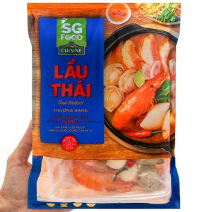 Đây là sản phẩm lẩu làm sẵn, thích hợp sử dụng trong những ngày bận rộn. Lẩu thái SG Food gói 500g bao gồm những phần nguyên liệu tươi ngon từ thịt cá, cá viên, chạo ốc,… cùng với gói sốt đậm đà hương vị lẩu Thái đến từ thương hiệu thực phẩm làm sẵn SG Food quen thuộc với người dùng.