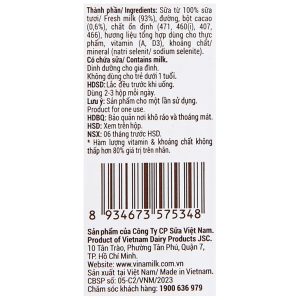 Sữa tươi Vinamilk là thương hiệu được tin dùng hàng đầu với chất lượng tuyệt vời được chế biến từ nguồn sữa tươi 100% chứa nhiều dưỡng chất như vitamin A, D3, canxi,… tốt cho xương và hệ miễn dịch. Lốc 4 hộp sữa tươi tiệt trùng socola Vinamilk 100% Sữa Tươi 180ml hương socola dễ uống.