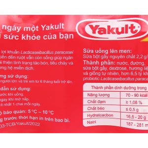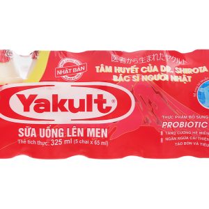 Sữa uống lên men Yakult là loại sữa chua uống được ưa chuộng nhất tại Việt Nam bởi đa dạng sản phẩm, giá bán lại hợp lý, được nhiều khách hàng ưa thích. Lốc 5 chai sữa uống lên men Yakult 65ml dạng chai nhỏ tiện dụng, chứa lợi khuẩn tốt cho tiêu hóa, thơm ngon.