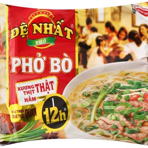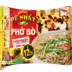 Phở ăn liền tiện lợi thơm ngon từ thương hiệu phở Đệ Nhất tuyệt hảo. Lốc 5 gói phở bò Đệ Nhất 65g theo công thức phở quán là sự kết hợp hài hòa, tỉ mỉ của các gia vị phở truyền thống, cùng nước cốt hầm xương thịt thật đậm đà thanh ngọt tự nhiênt cho bạn tô phở ngon như phở quán ngay tại nhà