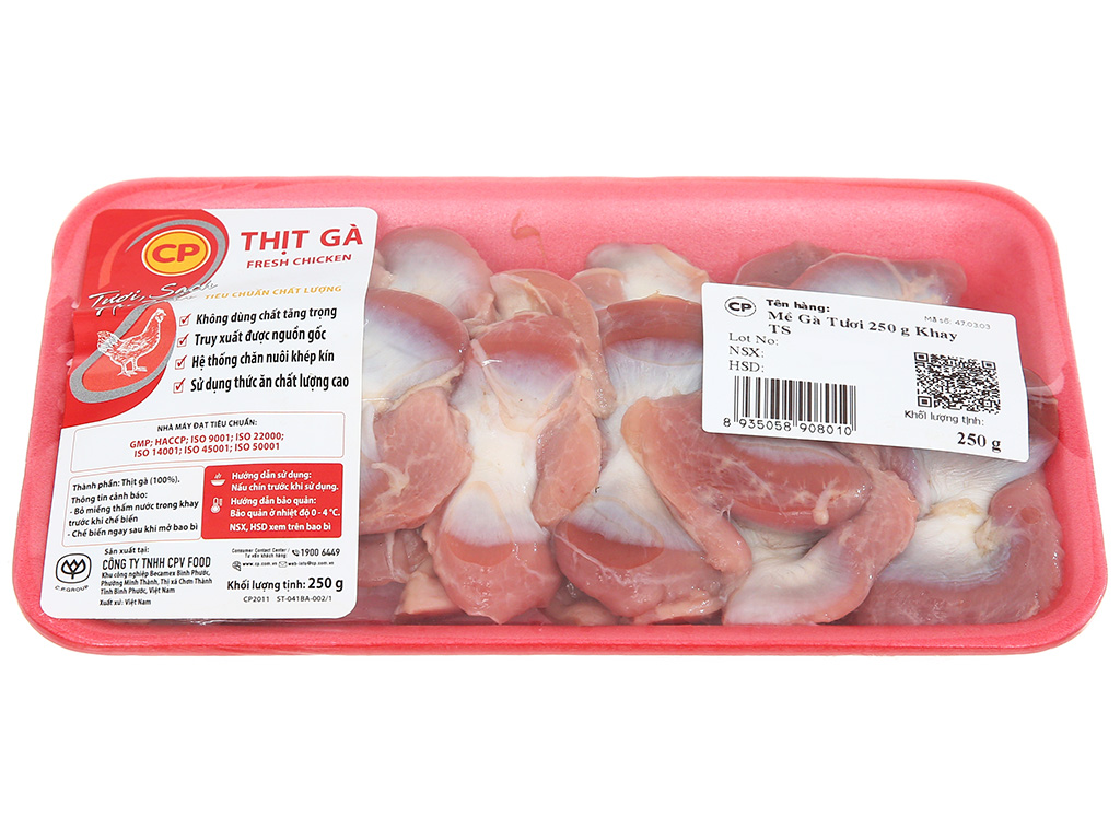 Mề gà đảm bảo nguồn gốc xuất xứ từ CP, khối lượng 1 khay là 250g