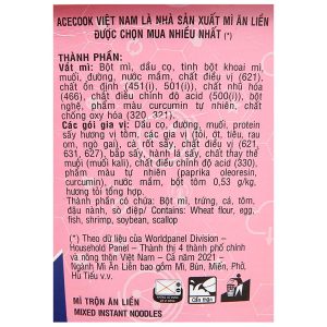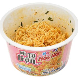 Sản phẩm mì ăn liền thơm ngon hấp dẫn, được sản xuất theo công nghệ Nhật Bản, quy trình hiện đại đảm bảo an toàn. Mì trộn Handy Hảo Hảo hương vị tôm chua cay tô 93g chính hãng mì Hảo Hảo danh mì Việt Nam được nhiều người yêu thích trong nhiều năm qua, hương vị chua cay truyền thống