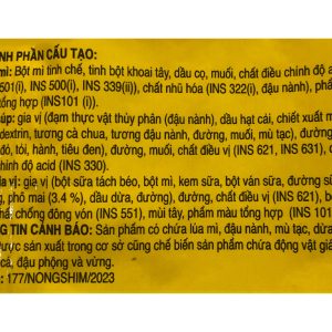 Mì xào Nongshim Shin Ramyun vị phô mai gói 136g là một sản phẩm mì xào của thương hiệu Nongshim, với hương vị phô mai đặc trưng. Shin Ramyun là một dòng sản phẩm mì gói nổi tiếng của Nongshim, được biết đến với hương vị cay nồng và đậm đà. Phiên bản vị phô mai mang đến sự kết hợp mới lạ giữa hương vị phô mai và hương vị cay nồng của mì Shin Ramyun truyền thống.