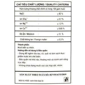 Các loại muối của thương hiệu muối Visaco sử dụng cho nhiều mục đích trong sinh hoạt hàng ngày, dùng để ngâm rửa rau củ hoặc để vệ sinh răng miệng, sát trùng. Muối sạch 555 Visaco gói 500g thành phần gồm muối biển tự nhiên đã qua xử lý, mang đến những hạt muối tinh, tốt cho sức khỏe.