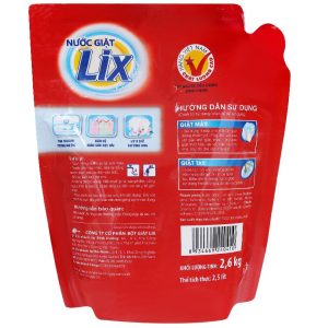 Nước giặt Lix với công nghệ lưu giữ hương thơm nước hoa từ Pháp giúp quần áo thơm thật lâu, nước giặt giúp đánh bật vết bẩn cứng đầu, giúp việc giặt giũ trở nên dễ dàng hơn. Nước giặt Lix đậm đặc túi 2.6kg đậm đặc gấp 2 lần bột giặt thông thường sạch vết bẩn nhanh chóng