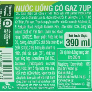 Sản phẩm nước ngọt chất lượng từ thương hiệu nước ngọt 7Up uy tín được nhiều người ưa chuộng. Nước ngọt 7 Up hương chanh chai 390ml có vị ngọt vừa phải và hương vị gas the mát, giúp bạn xua tan nhanh chóng cơn khát, giảm cảm giác ngấy, kích thích vị giác giúp ăn ngon hơn, cung cấp năng lượng