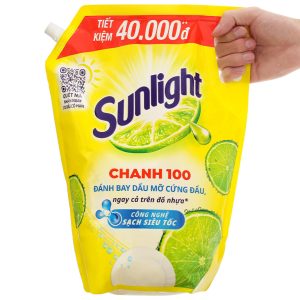 Nước rửa chén Sunlight giúp khử mùi tanh triệt để trên chén dĩa chỉ với 1 lần rửa. Nước rửa chén còn giúp diệt khuẩn hiệu quả, là thương hiệu yêu thích của hàng triệu người. Nước rửa chén Sunlight Chanh 100 chiết xuất chanh tươi túi 3.38 lít đánh bay dầu mỡ với sức mạnh 100 trái chanh.