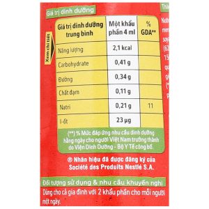 Với hương vị thanh ngon đặc trưng trong từng giọt nước tương sánh đậm, để lại dư vị tinh tế cho từng món ăn. Nước tương Maggi đậm đặc chai 300ml với tinh chất đậu nành đậm đặc, sử dụng công nghệ lên men tự nhiên 100% giúp giữ lại vị ngon tinh túy đến từ thương hiệu nước tương Maggi.